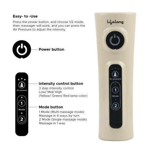 Massage Modes The multiple modes of operation of the Lifelong Air Pressure massager allow the user to customize the settings of the massager according to their needs. It ensures a greater level of comfort well suited to each user’s needs. |